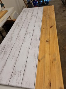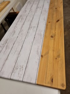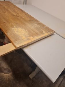 Efter kapningen såg det ut så här… och därefter kände jag för att dekorplasten skulle fastna bättre så är det bättre jag slipar bordet.