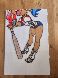 Då har jag gjort en tavla med Harley Queen. Den har jag gjort i Hama Mini och dem är 2,6 mm och det är 11137 pärlor 🙂