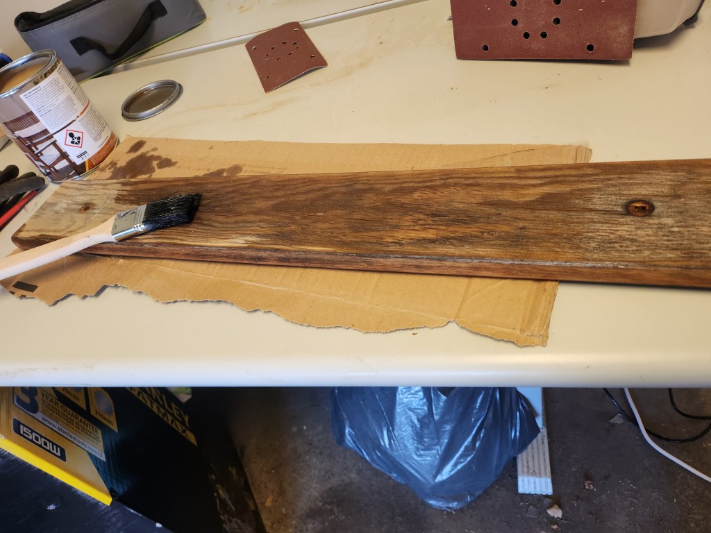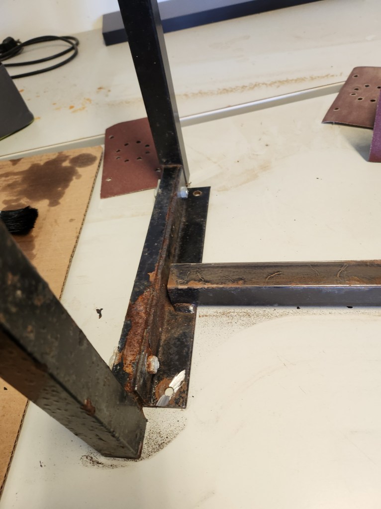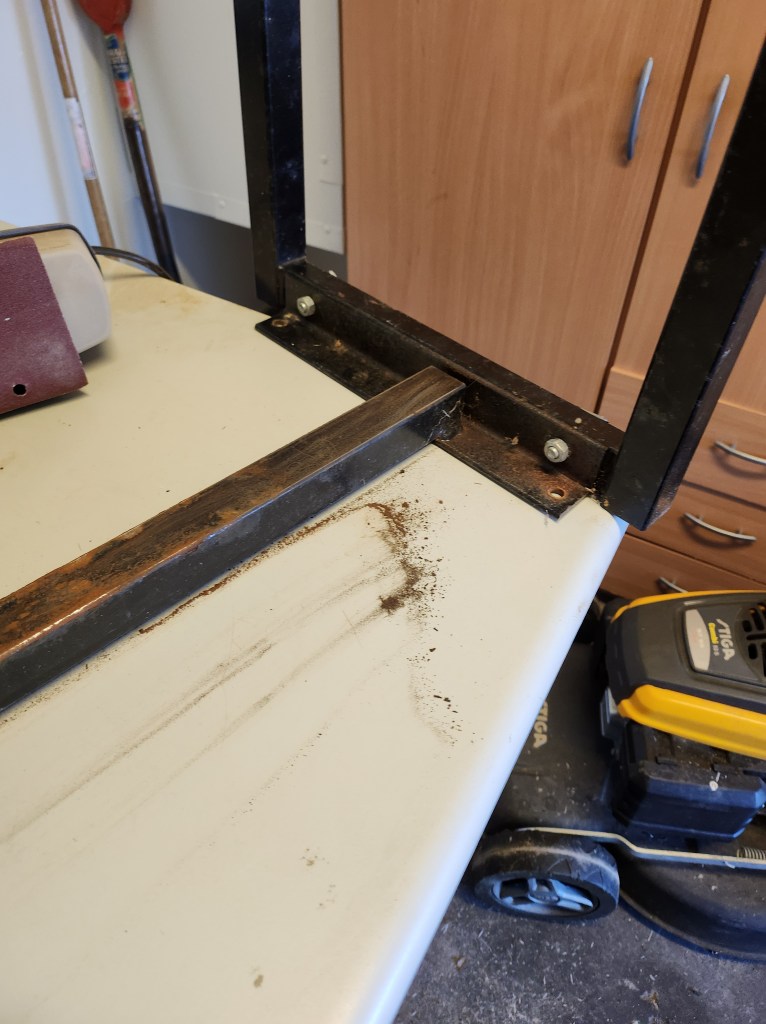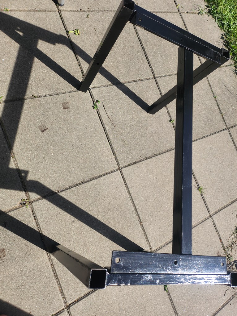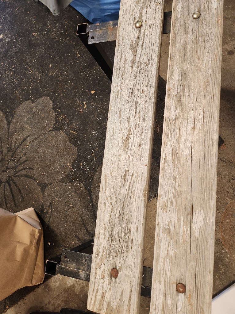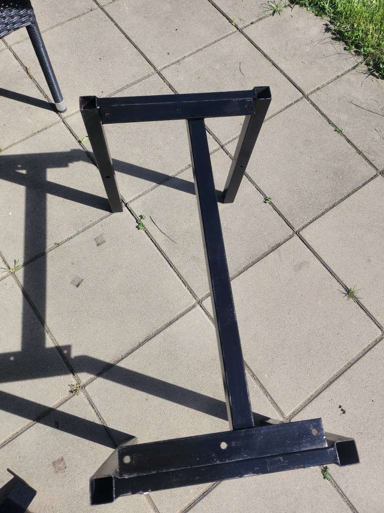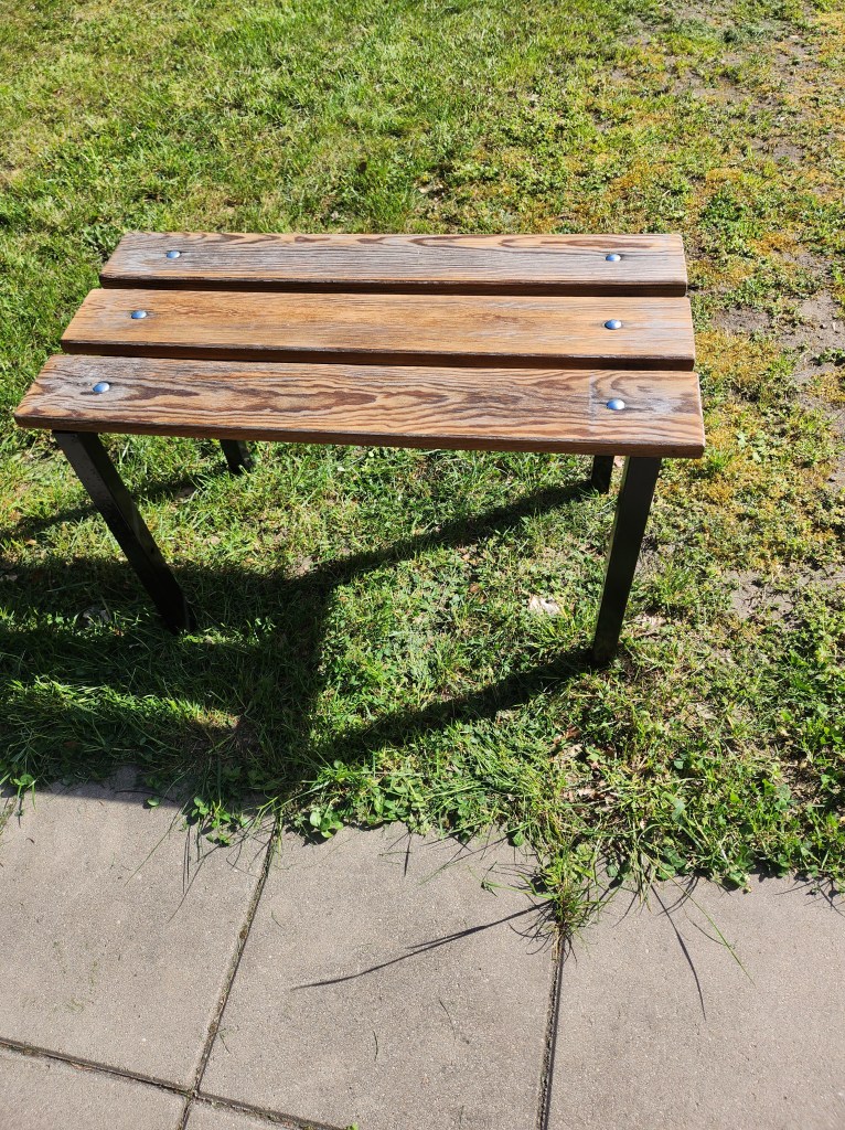 Hade en gammal bänk som jag har haft ute men egentligen skulle den inte vara ute men jag tyckte den såg bättre ut när den var ute och då kom idéen att jag skulle göra om den. Jag slipade alla delar även metallen och sen tog jag och lackade träbrädorna, efter det målade jag benen svarta.